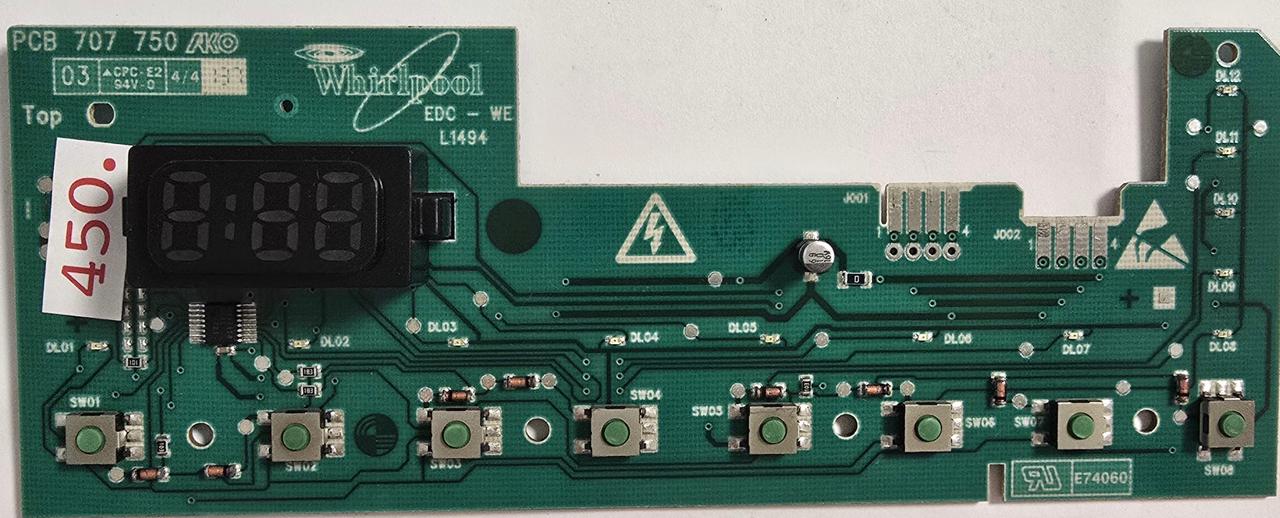 WASCHMASCHINE ELEKTRONIK BAUKNECHT PCB 707 750 03 EDC-WE L1494 CPC-E2 94V-0 4/4 137 WH 461971403701-02 E1 AKO CN 707629-05 070715 484 (Gbr) Position Nummer: W22-450